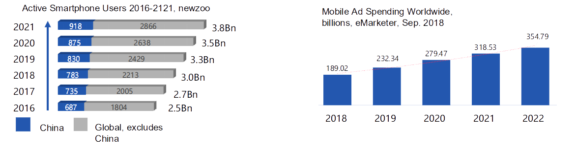全球移動(dòng)用戶增長(zhǎng)迅猛,國(guó)際廣告市場(chǎng)前景廣闊