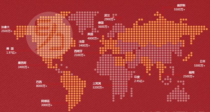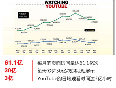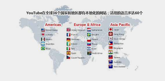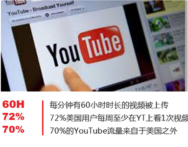 YouTube在全球36個國家和地區(qū)都有本地化的網(wǎng)站,適用的語言多達60個,每月有超過10億人訪問YouTube,觀看YouTube視頻的時間超過60億小時。