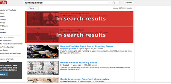 當訪客使用YouTube搜索工具,搜索視頻信息的時候,展示您的廣告內(nèi)容。