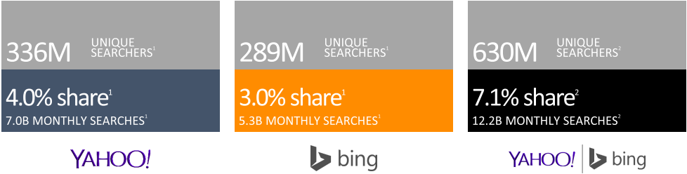 1)雅虎+必應(yīng)是全球化的搜索引擎,為全球75個(gè)國(guó)家和地區(qū)的近5億用戶提供搜索服務(wù), 是全球第二大搜索引擎。早在成立之初,為了確保新版搜索引擎Bing成為全球化品牌,微軟已經(jīng)申請(qǐng)了能想到的幾乎所有國(guó)家的地理域名。