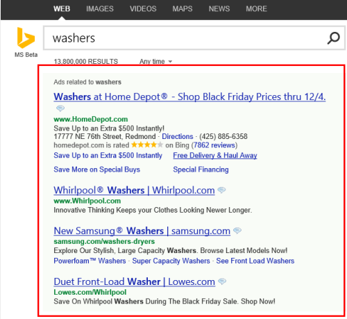 廣告可同時(shí)展示在必應(yīng)和雅虎搜索
