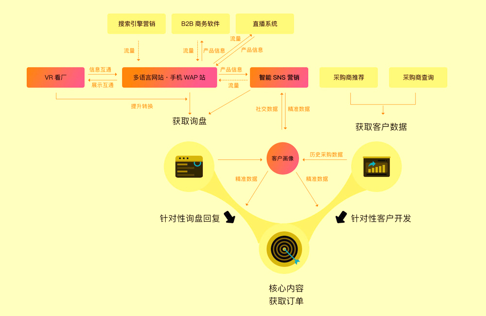 由Google首頁關(guān)鍵詞排名、Google Images 和 Google Video 排名、直播系統(tǒng)、客戶畫像、全球采購商推薦、全球采購商查詢、商務(wù)軟件、SNS營銷以及外貿(mào)實(shí)戰(zhàn)培訓(xùn)組成的智能網(wǎng)絡(luò)營銷矩陣,最大限度地在一個(gè)系統(tǒng)內(nèi)涵蓋全方位的網(wǎng)絡(luò)營銷渠道,真正實(shí)現(xiàn)了以大數(shù)據(jù)和云計(jì)算為基礎(chǔ)的智能網(wǎng)絡(luò)營銷。